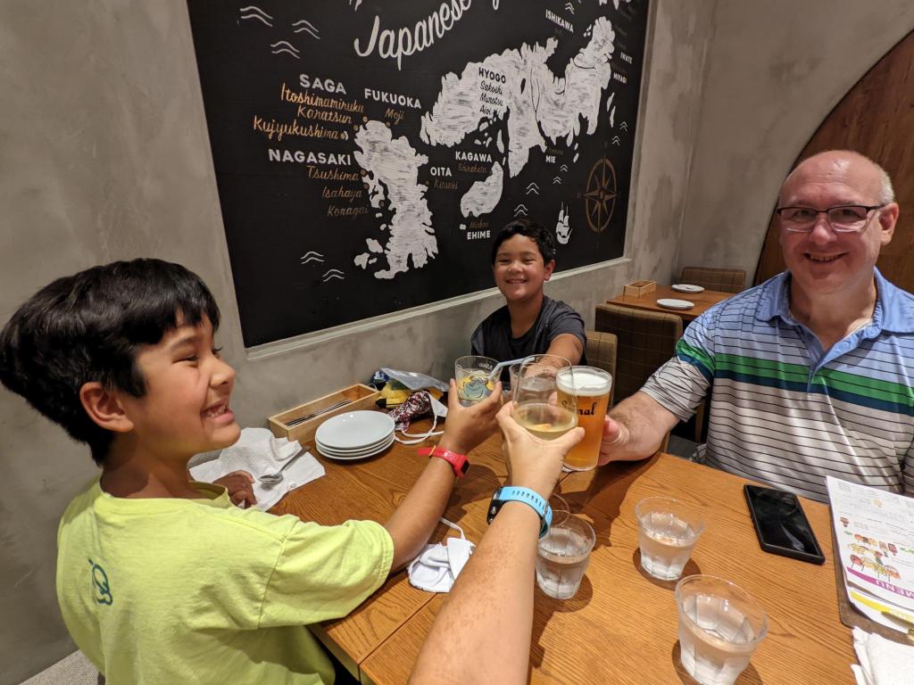 On our first day, we went to Kura sushi. Yes, the same Kura sushi that we have in the US. The same conveyor, super cool, robot-delivered-drinks. We are ready for Kura Sushi, after all we had been going to the Chandler and Dobson Kura Sushi every weekend. We have learned to eat sushi and used chopsticks. We are ready! We got it, and I am so proud of my 11yo able to figure out how to get a table, you basically need to input information, print a ticket, and get seated. Well, we were not ready for Kura Sushi, Tokyo 🙂 But we had a good time, A for effort. Even with a beer, some sushi is just a bit too much for our liking. We ended up ordering udon and fried chicken 🙂