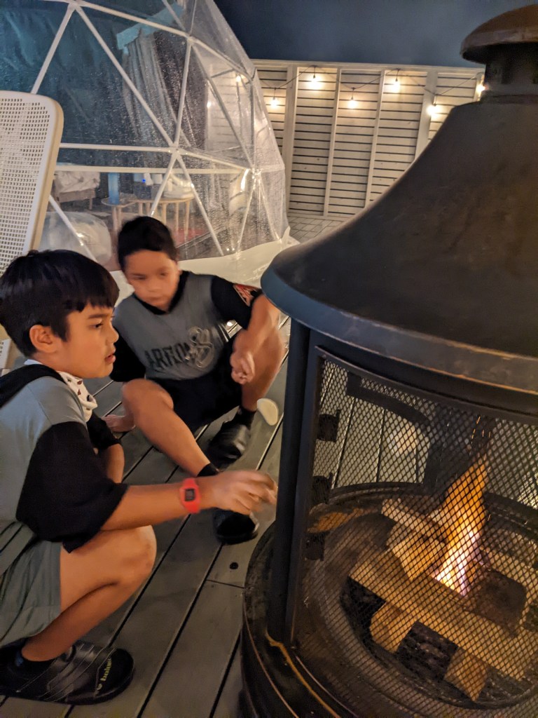 Camping is not complete without smores. We have to make do of what we have. No Graham crackers, no problem! No hershey bars, no problem. We will make it up as we go 🙂 Marshmallow? Check! Crunchy sweet crackers, check; Chocolate, check! We are ready to smores.