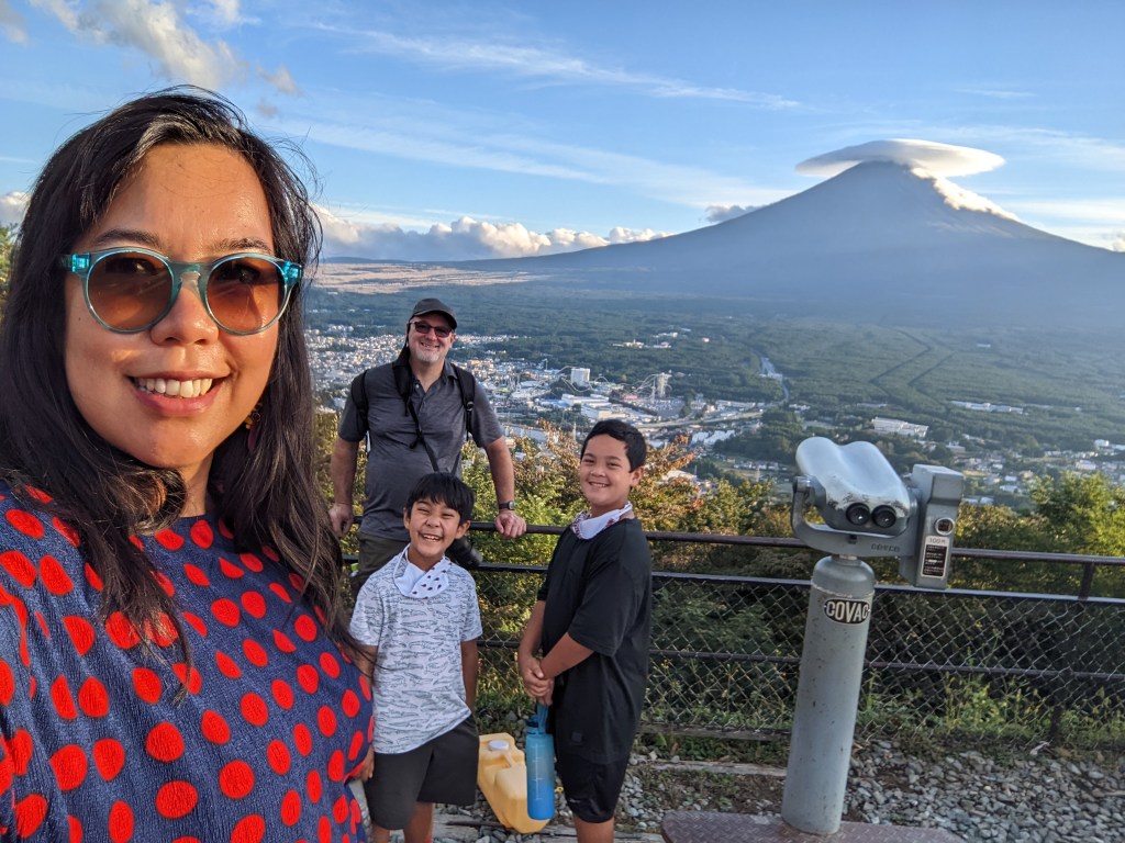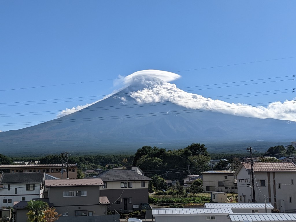 We arrived here in the summer of 2022 and stayed at a high rise with a promise of the view of Mt. Fuji, on a clear day. Summer days are never a clear day in Japan. There are clouds everyday, but yes, somehow on a clear-ish day, you can see a faint Mt. Fuji over the horizon.