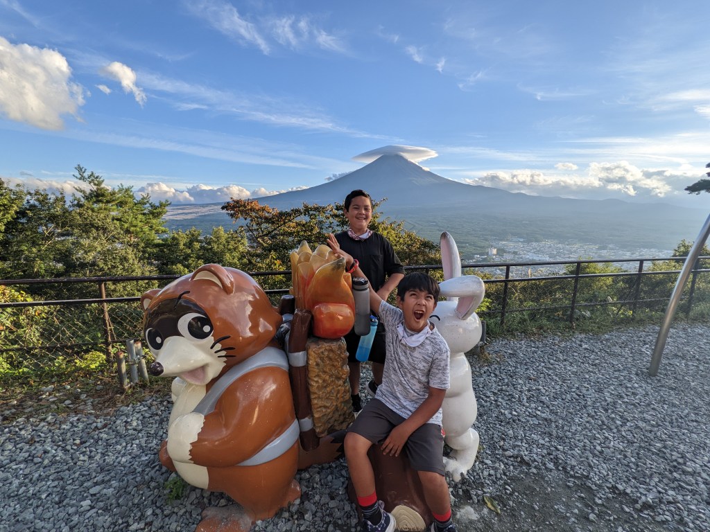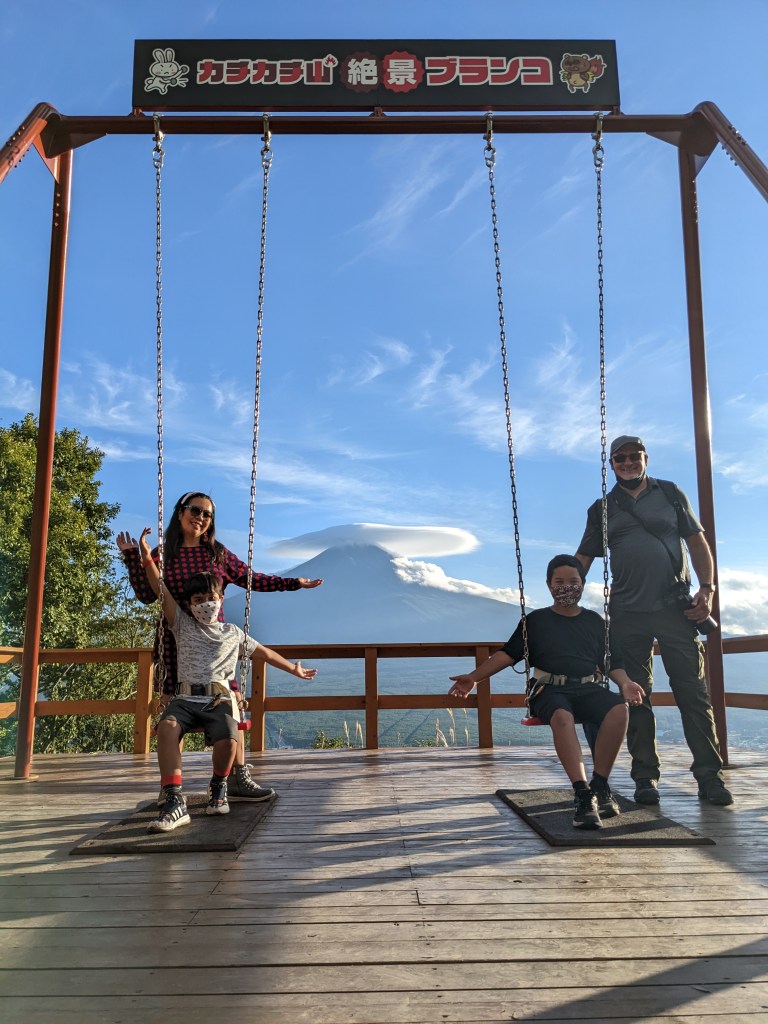 This is probably my favorite one of all. The kids swinging towards Mt. Fuji
