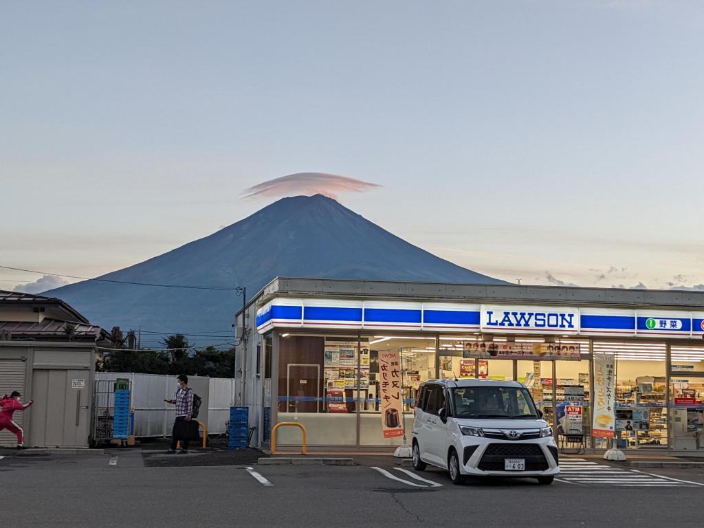 By the end of the day, sunset is just as majestic. I was such in a hurry to go back to the deck and take photos. I was walking so fast, an older Japanese lady stopped me on my tracks, spoke to me in Japanese. Oh how I wish I can speak to her, she pointed the beautiful sunset happening that I am missing. A good reminder to look around you, admire every moment, because it could easily pass us by. Thank you to the wonderful grandma who asked me to stop. We spoke briefly, thank you to Google translate. I told her the sunset is magnificent, gave a smile on her face. I wish I knew what she said back 🙂 but here it is. Mt Fuji, by Lawson