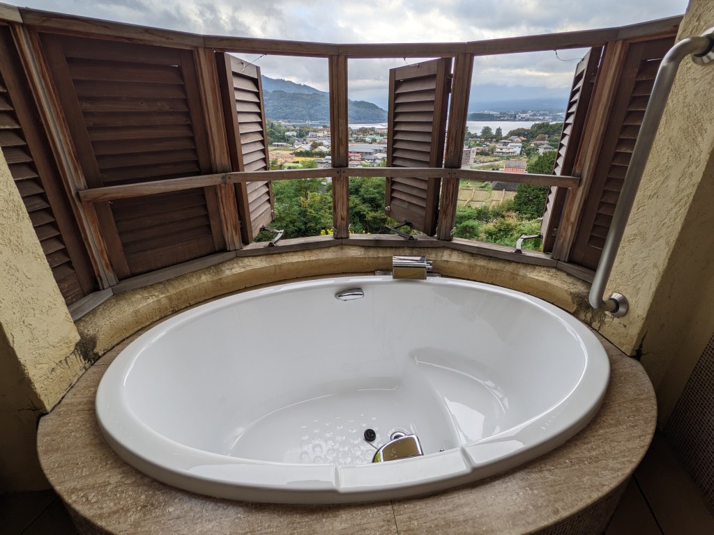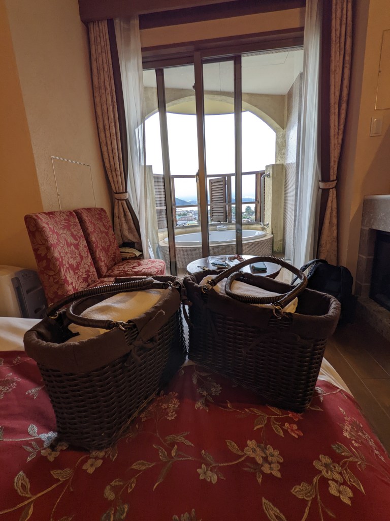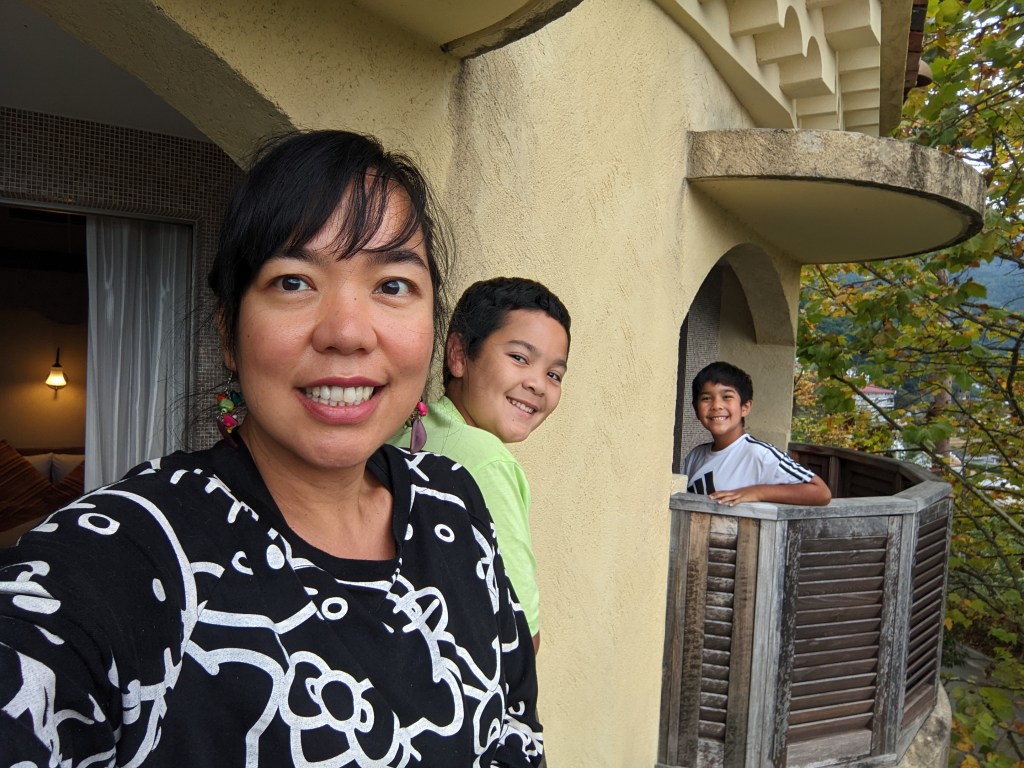 We stayed in a different place this time. It was a rush booking because we, shall I say, I didn’t realize until much later that the break was the week after. This location is not glamping kind, it’s a hotel kind. It is nestled up a mountain, where you can enjoy the view of Mt. Fuji, while bathing in your outdoor tub. How cool is that! The rooms are super small that when my family of four arrived and the front desk looked at us, he immediately told us that we will not fit in our room 😀 This is probably the first of many times, as my boys grow bigger, that we will have to book 2 rooms. The folks are so gracious that even without a booking for 2 rooms had allowed us to get 2 rooms next to each other. The hotel is magnificent, the service, the on-site onsen, and the location is wonderful.