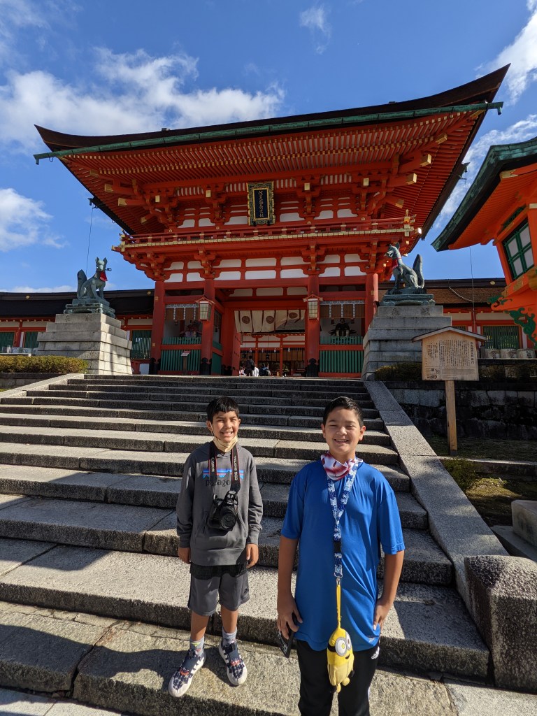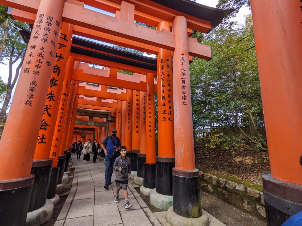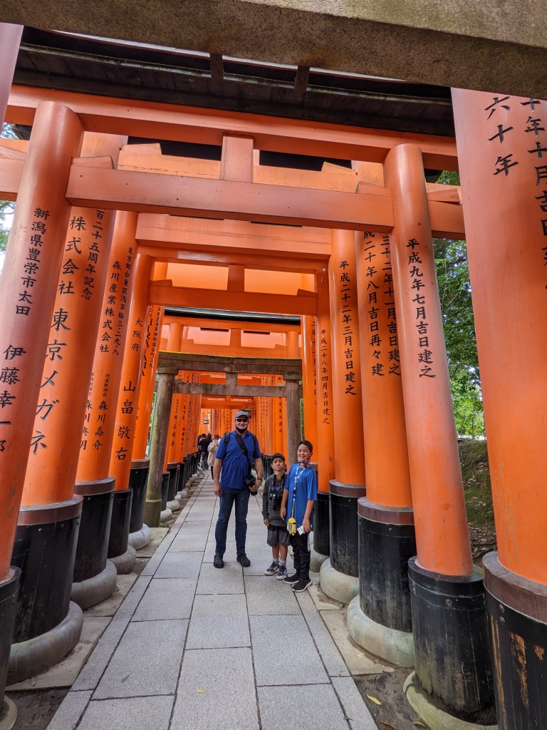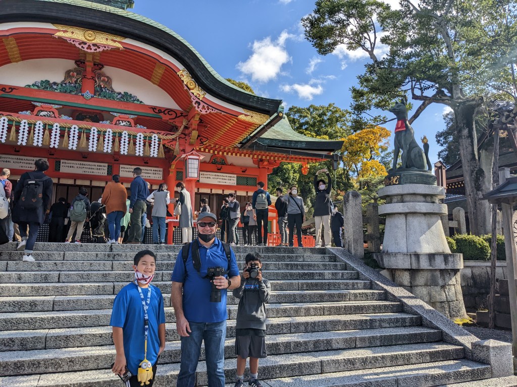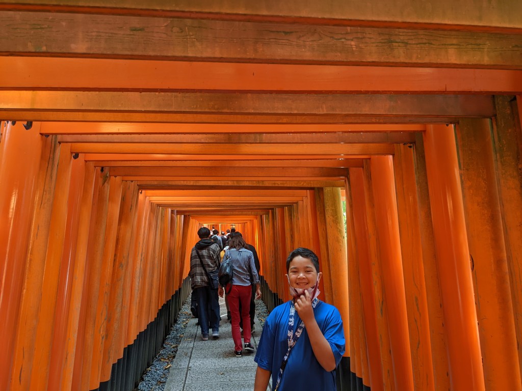 Our first adventure is the popular, highly talked about Fushimi Inari Shine. Fushimi Inari Shrine (伏見稲荷大社, Fushimi Inari Taisha) is an important Shinto shrine in southern Kyoto. It is famous for its thousands of vermilion torii gates, which straddle a network of trails behind its main buildings. The trails lead into the wooded forest of the sacred Mount Inari, which stands at 233 meters and belongs to the shrine grounds. (see details here). Our family did hike the trail and enjoyed the thousand Torii Gates. The shrine on top of the Mount Inari can’t be expressed in words nor photos. You have to see it for yourself.