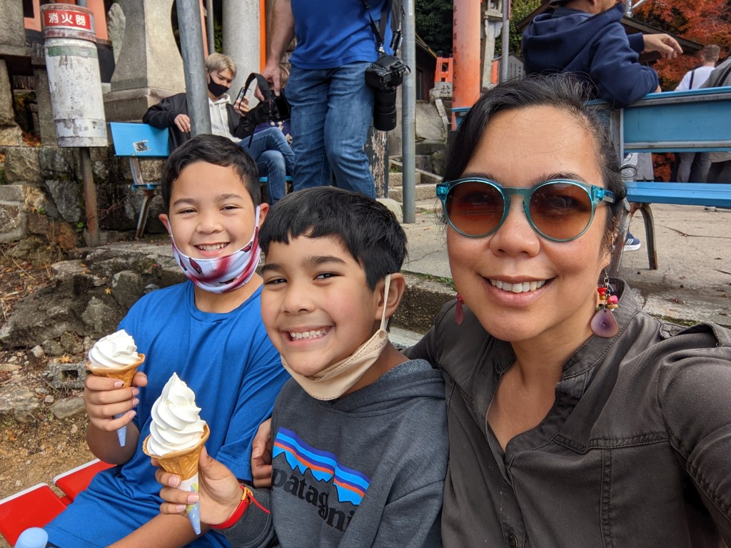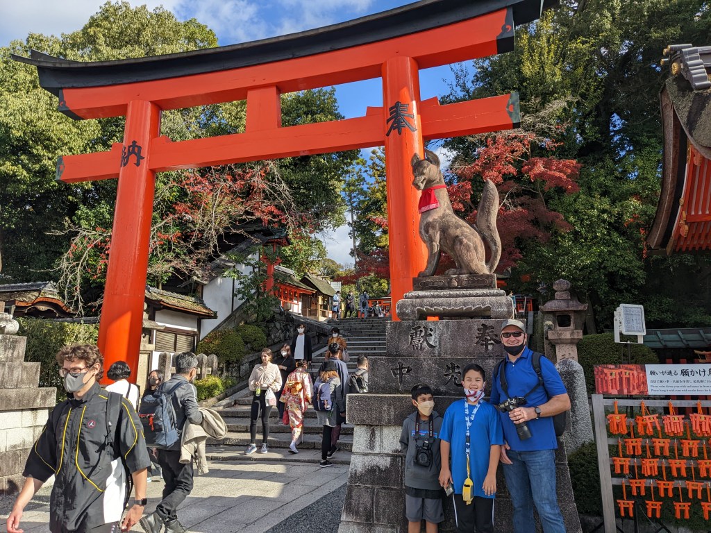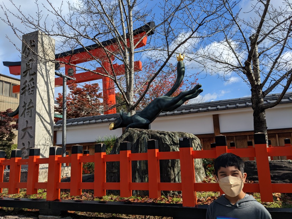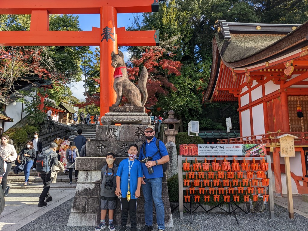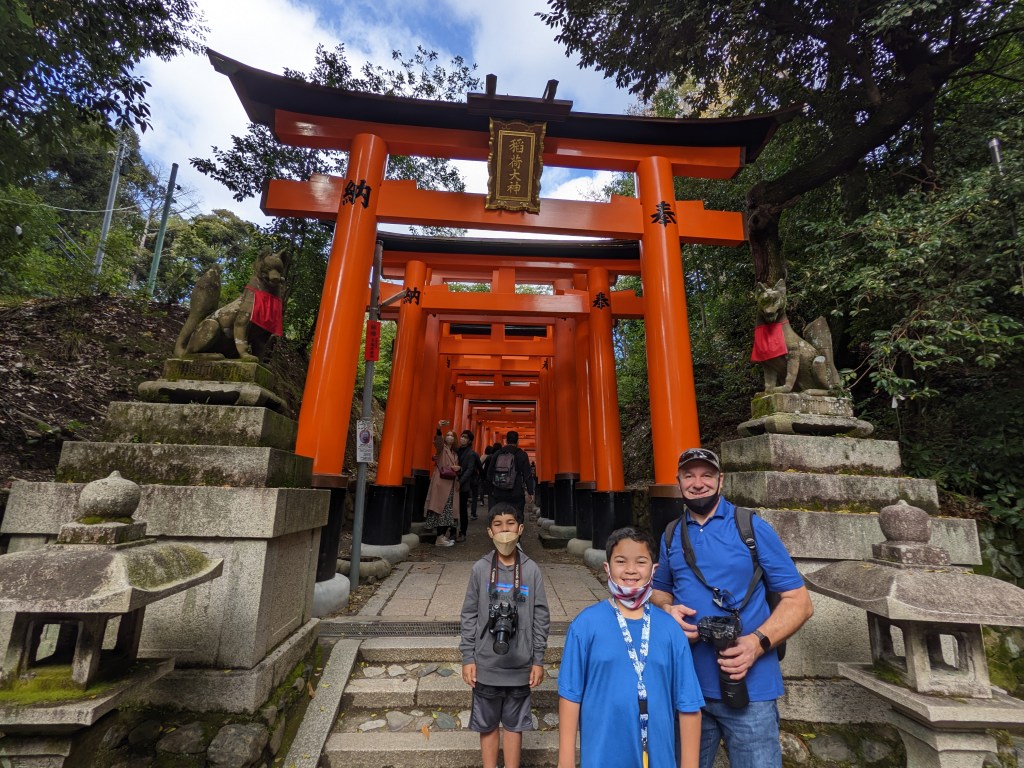 Our first adventure is the popular, highly talked about Fushimi Inari Shine. Fushimi Inari Shrine (伏見稲荷大社, Fushimi Inari Taisha) is an important Shinto shrine in southern Kyoto. It is famous for its thousands of vermilion torii gates, which straddle a network of trails behind its main buildings. The trails lead into the wooded forest of the sacred Mount Inari, which stands at 233 meters and belongs to the shrine grounds. (see details here). Our family did hike the trail and enjoyed the thousand Torii Gates. The shrine on top of the Mount Inari can’t be expressed in words nor photos. You have to see it for yourself.