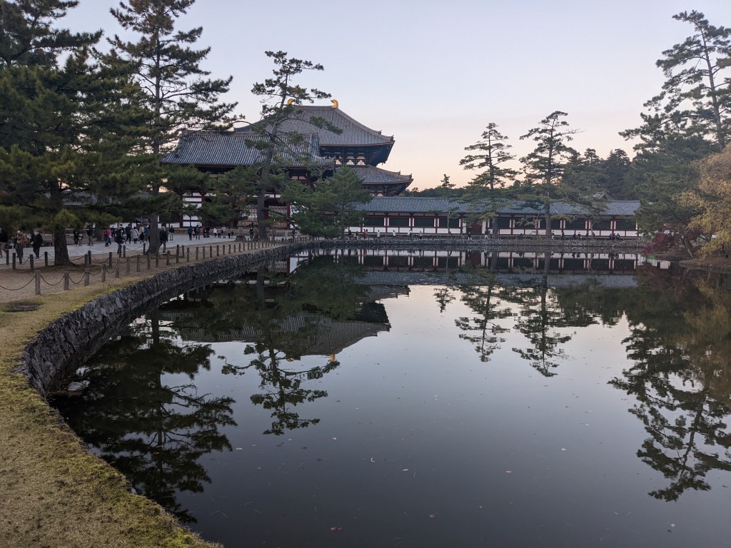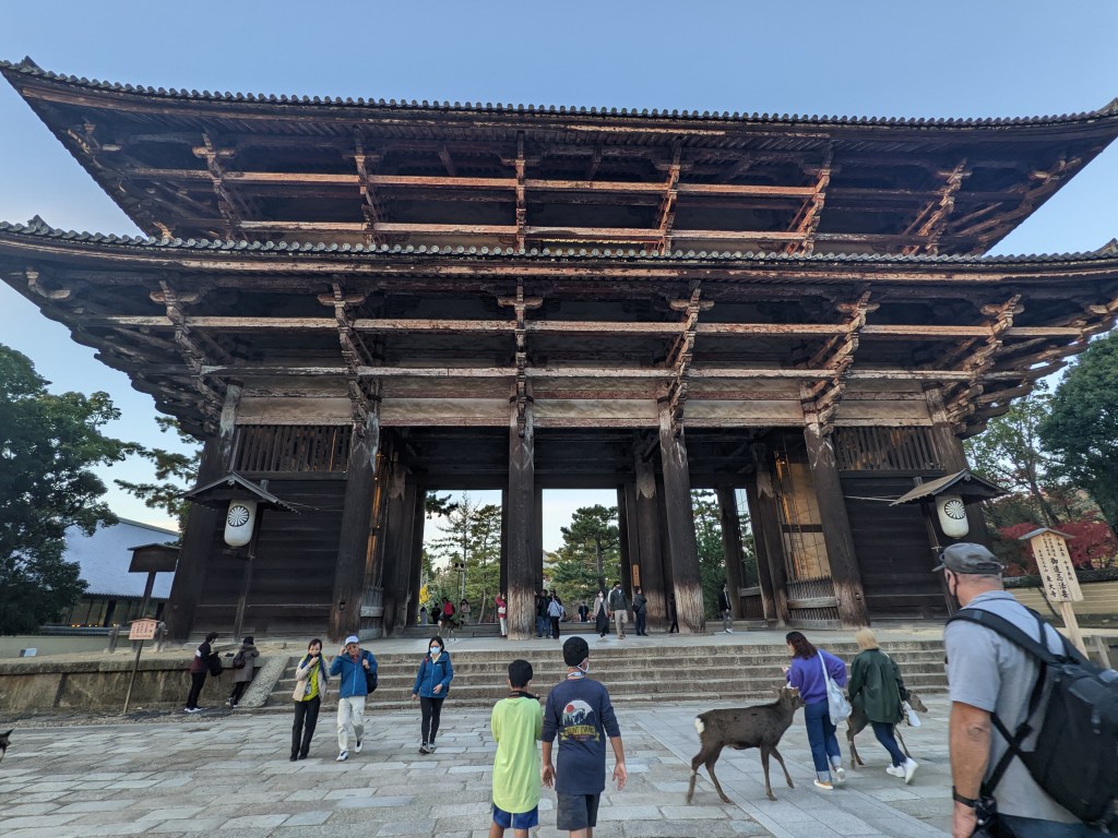 At the end of Day 2 in Nara Park, we squeezed in one more Temple, the magnificent Todaiji Temple. The grounds are beautiful especially with the sunset in the background and fall colors surrounding the gardens. We didn’t have time to explore temple as it is about to close. Another reason to go back 🙂